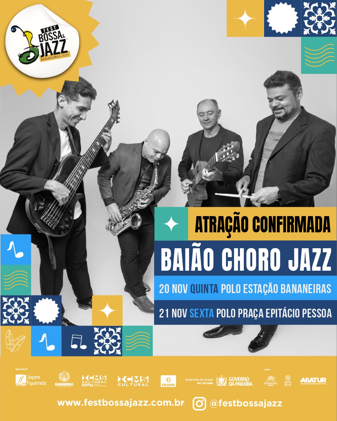 O Baião Choro Jazz, grupo instrumental formado no alto sertão paraibano, leva ao público a riqueza dos ritmos nordestinos com uma abordagem contemporânea e inovadora.